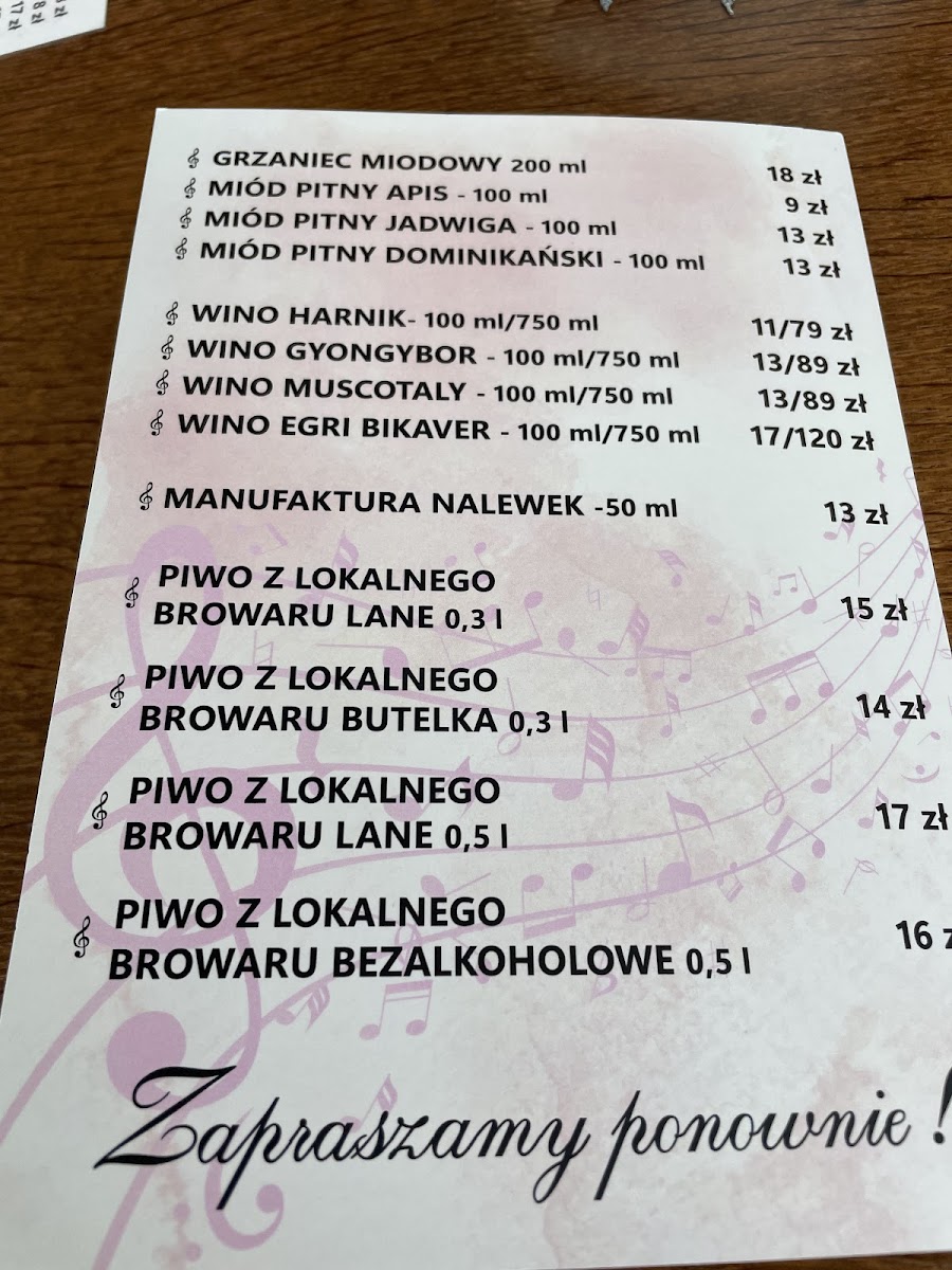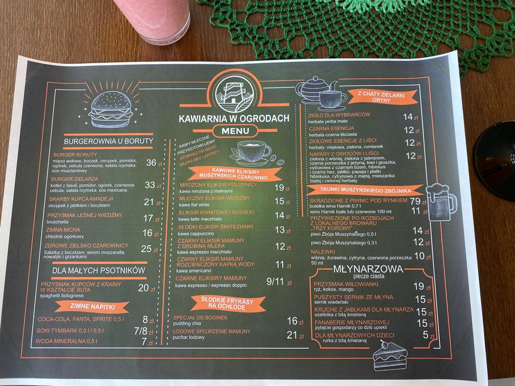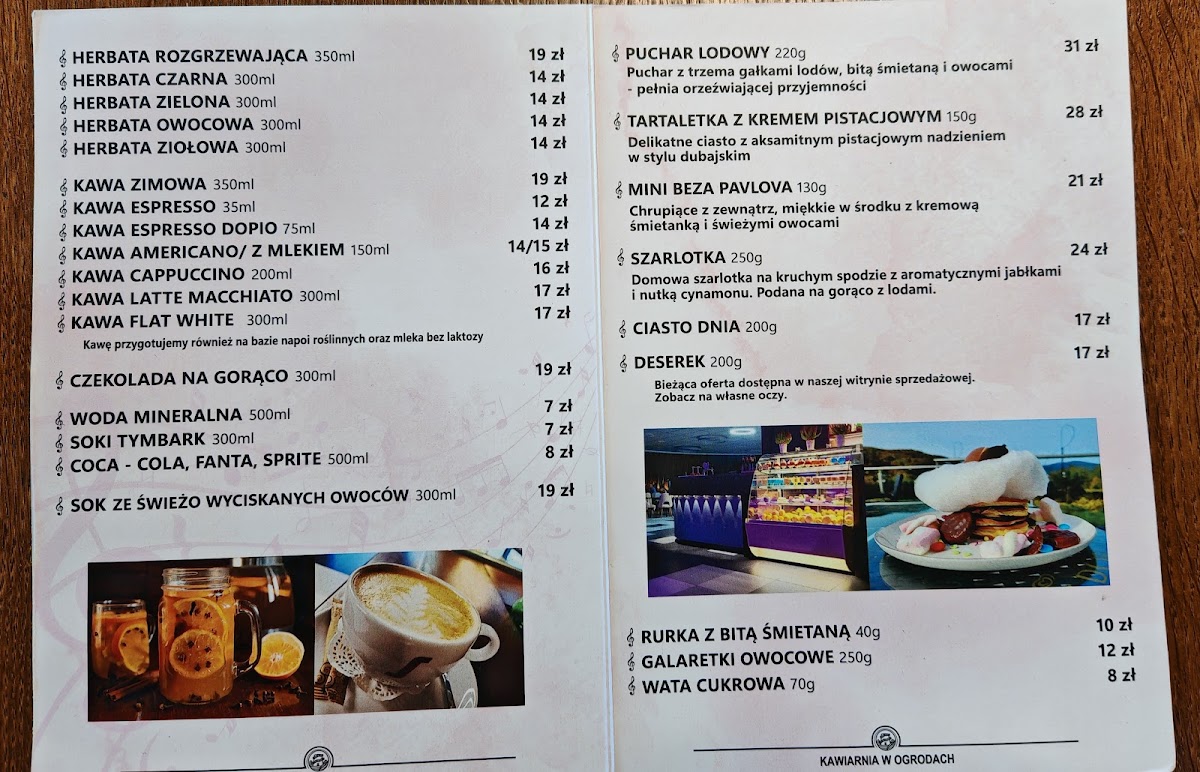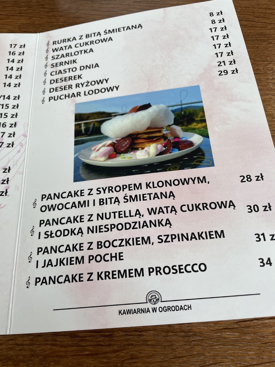 Kawiarnia ogrodowa Menu